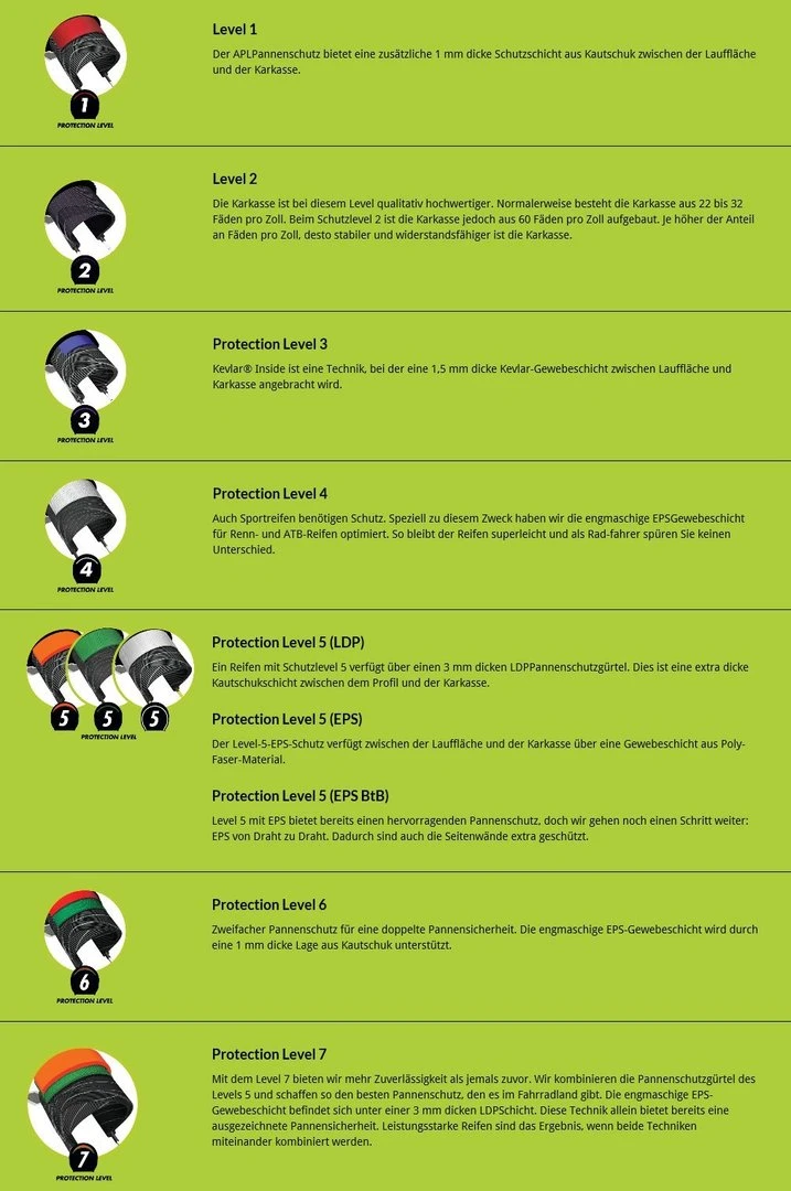 Dieser Reifen legt seinen Akzent auf den Pannenschutz. Zwischen der Lauffläche und der Karkasse befindet sich ein dicker Pannenschutzgürtel. Der Reifen zeigt sich aus für seine Schnelligkeit, Stärke und seinem geringen Rollwiderstand. Ein weiterer Vortail ist sicher noch seine Langlebigkeit